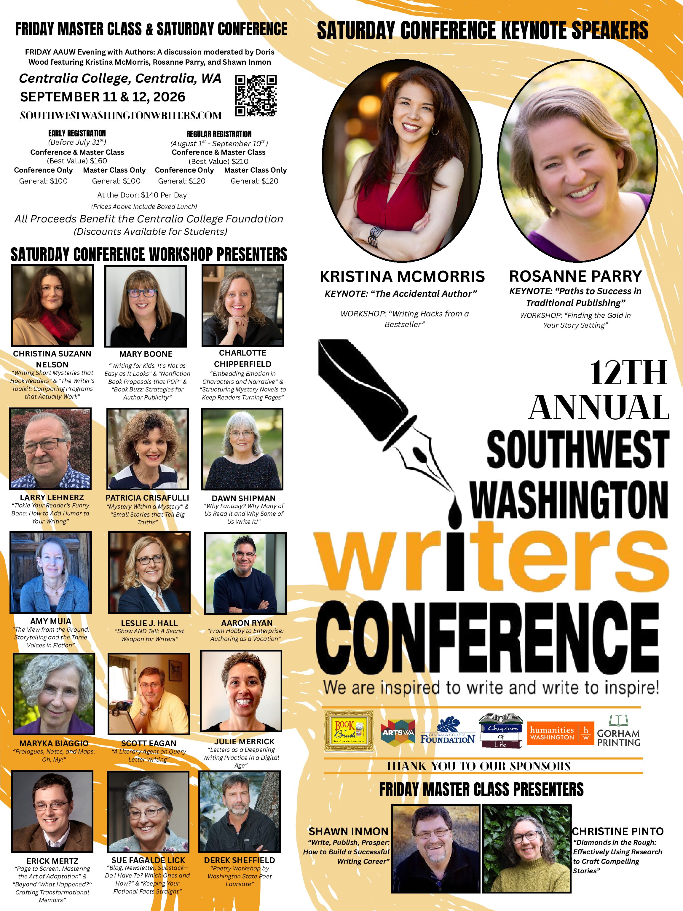 THANK YOU for your interest in the only regional writers’ conference in Southwest Washington.