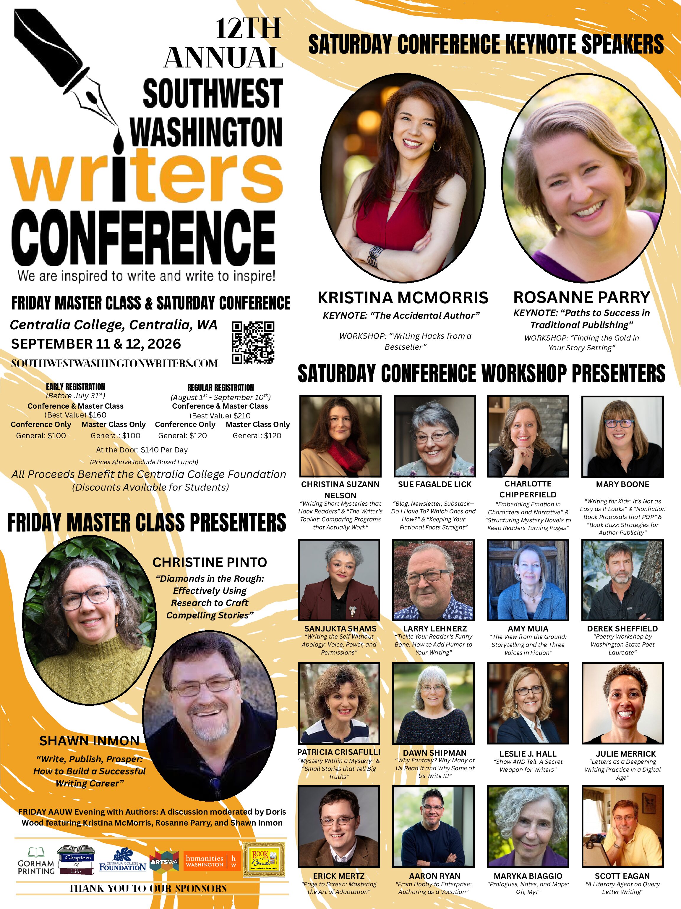It’s exciting for us to offer aspiring writers, published authors, and students the opportunity to learn while raising money for the Centralia College Foundation. While eager to inspire writers who attend our conference, we also strive to benefit the community. Proceeds support the conference and provide scholarships through the Centralia College Foundation.
